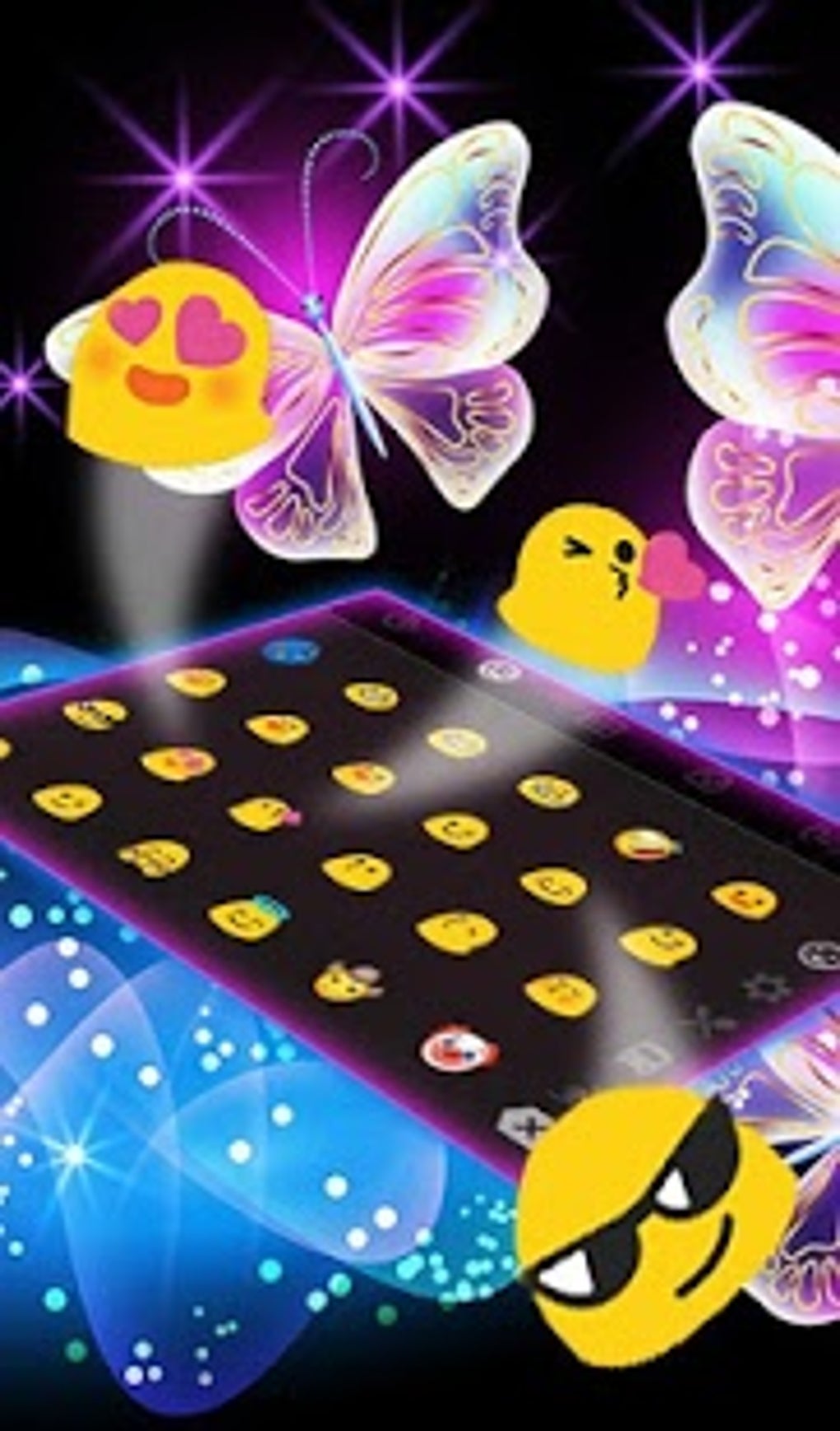 Colorful Glitter Neon Butterfly Keyboard Theme is a free program for Android that belongs to the category Personalization, and has been developed by Fashion Cute Emoji. This program is available in English.