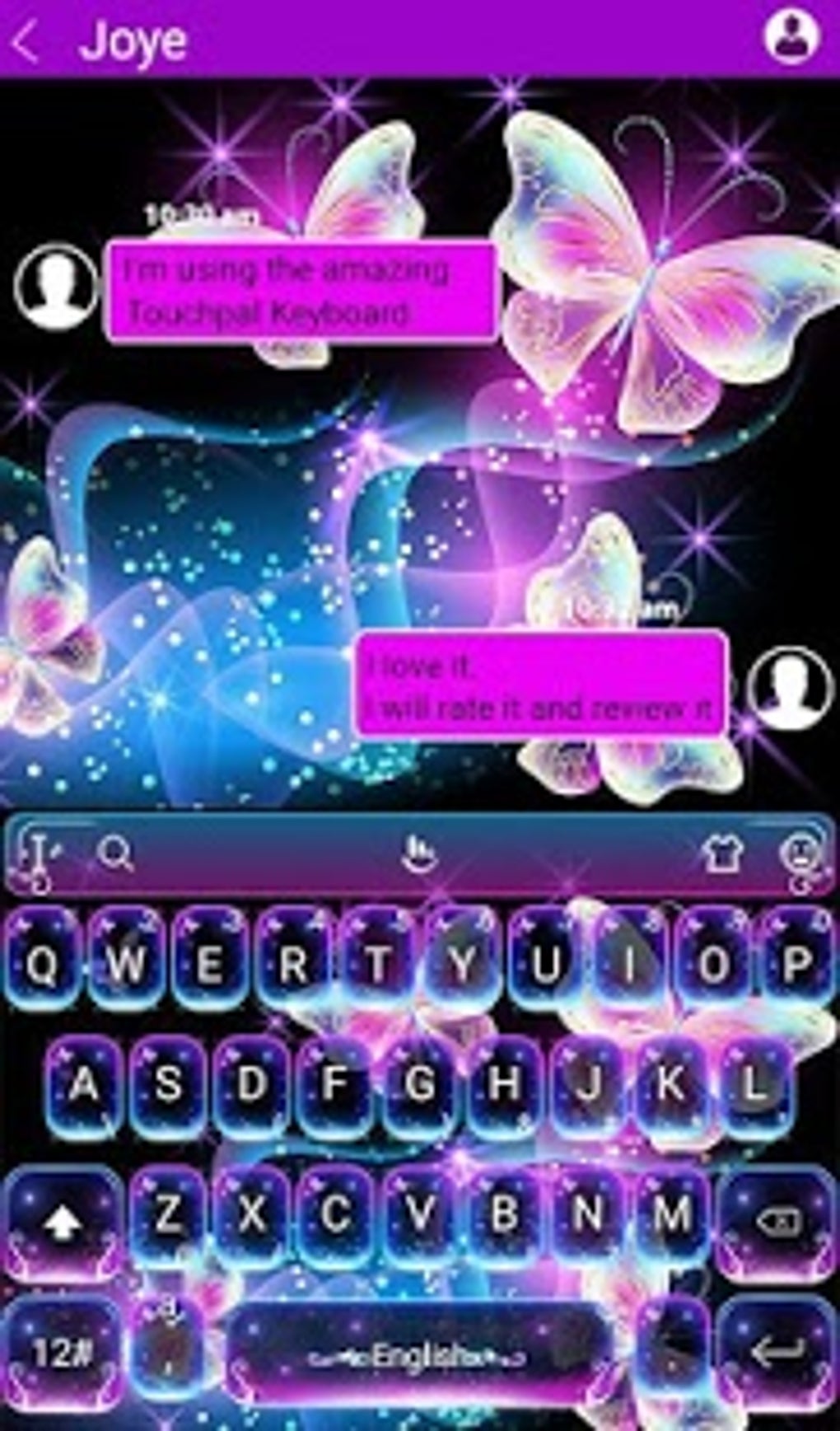 Colorful Glitter Neon Butterfly Keyboard Theme for Android